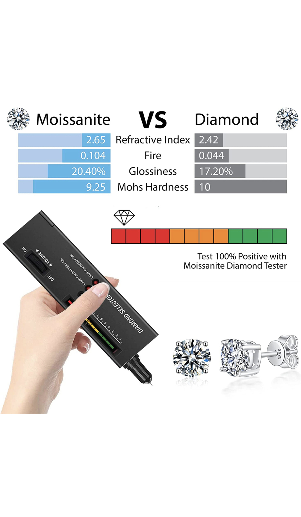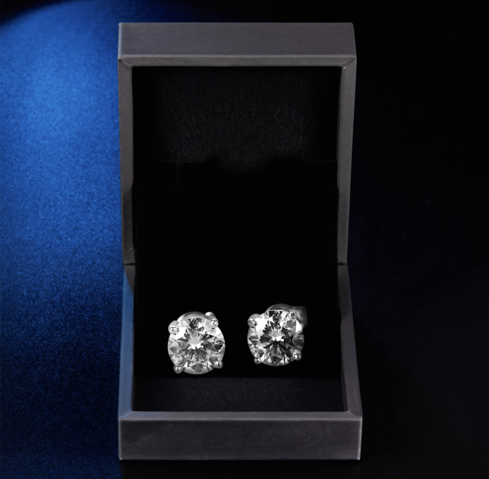 -MATERIALS: This moissanite stud earrings is made with 18K white gold plated silver and created moissanite. The back finding is post with friction back. Made to last a lifetime, strong and durable! All the metals we use are lead free, nickel free and hypoallergenic.